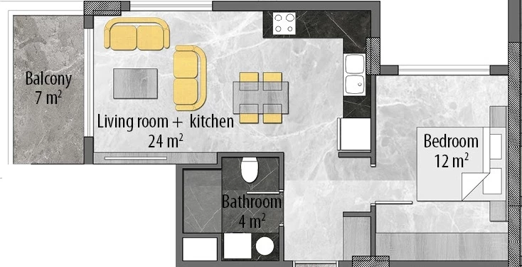 Wohnung zum Verkauf in Alanya. Fläche m²: 48, Zimmer: 1+1, Preis: 155 000 Euro. (ID 469)